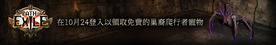 為了慶祝10月24日(GMT+8)的《流亡黯道:黯焰看守者》發布會直播,我們將向所有玩家發送免費的「巢裔爬行者」寵物。領取這個禮物的方式很簡單,只要在10月24日當天的下午1點到10點(GMT+8)之間登入《流亡黯道》即可!
